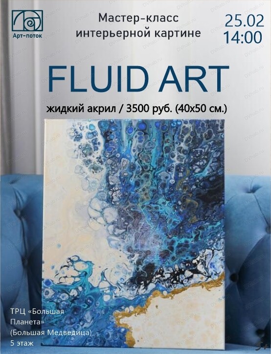 Творческая студия "Арт-поток" приглашает на мастер-класс по интерьерной картине в технике флюид арт.