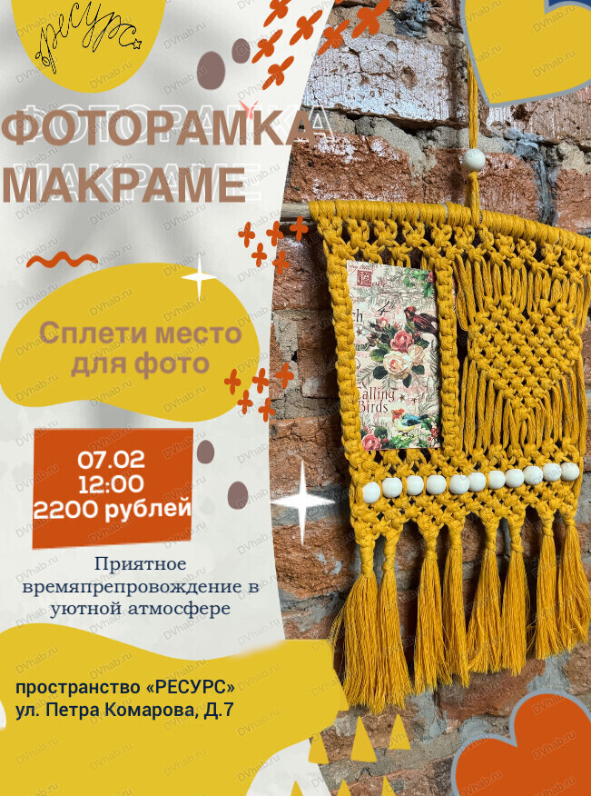 Вы зарегистрированы на событие «Мастер-класс "Фоторамка" в технике макраме», на 7 февраля 12:00