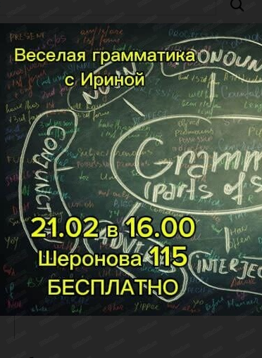 Вы зарегистрированы на событие «Веселая грамматика на английском языке», на 21 февраля 16:00