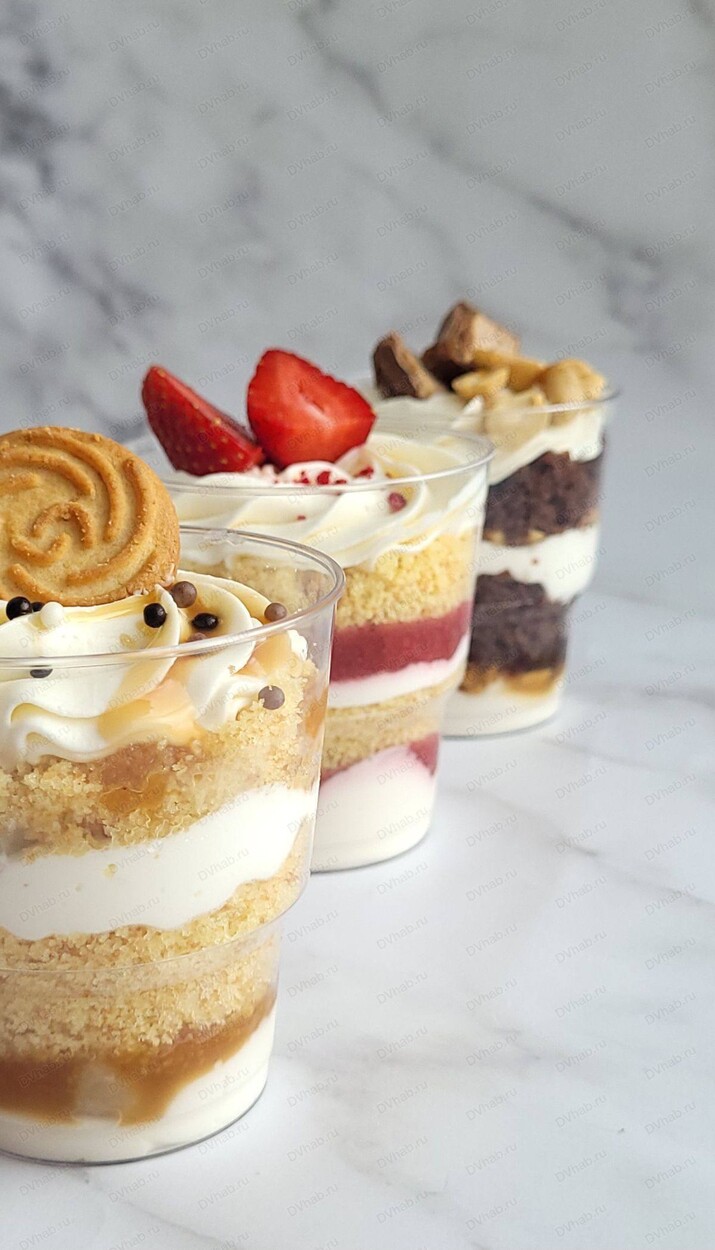 Каждый ребёнок соберёт свой яркий тортик в стакане (2 шт.), украсит его сладостями и кремом.