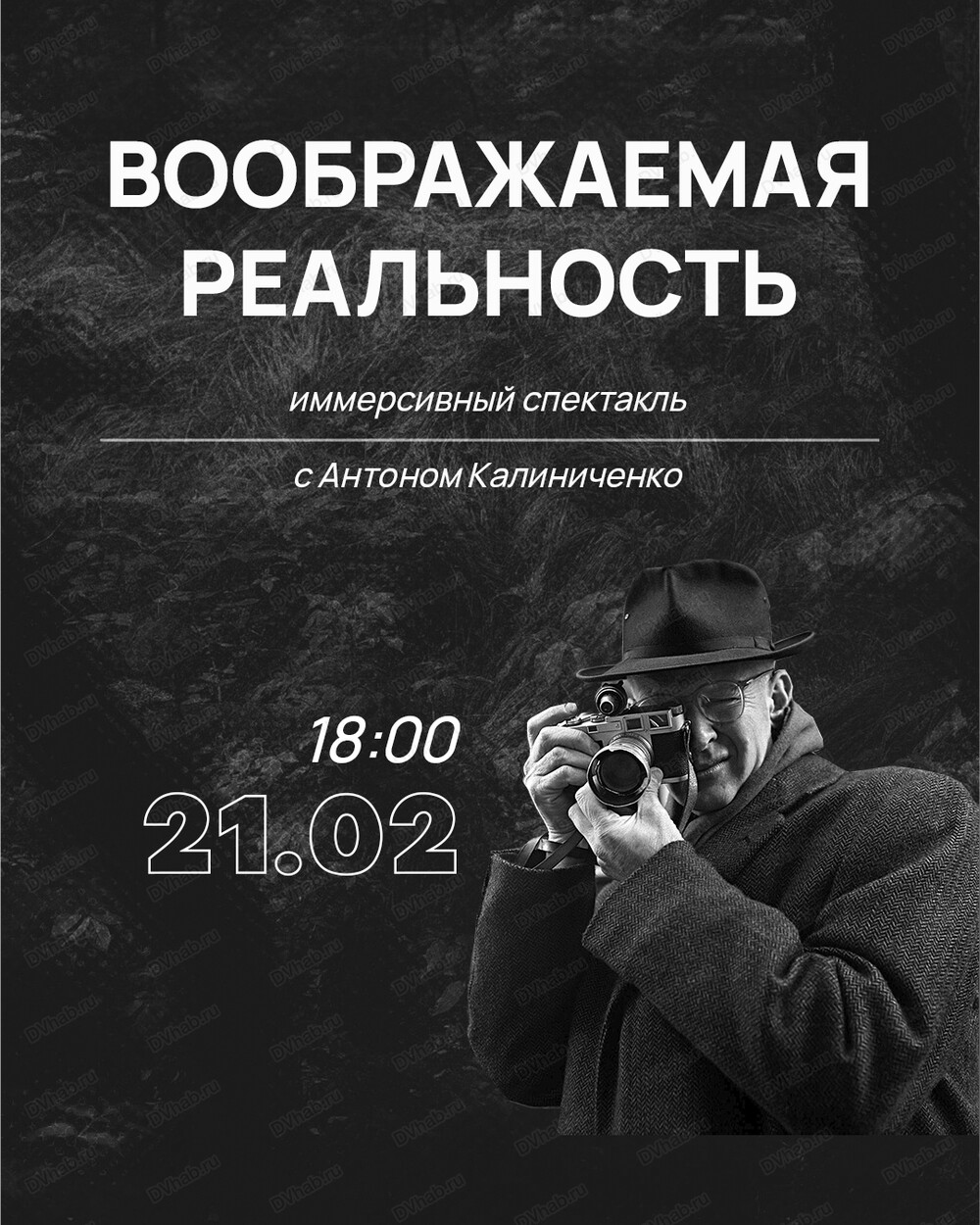 Вы окажетесь в пространстве интимного разговора с фотографом, услышите его мысли и наблюдения о жизни, об искусстве и конечно о фотографии. Познакомитесь с его работами. Здесь не будет актёров, не будет сцены, ведь это «Воображаемая реальность», которую вы создаёте сами, в своей голове. Так же как фотография создаёт новую реальность внутри кадра, сделанного в решающий момент времени.
