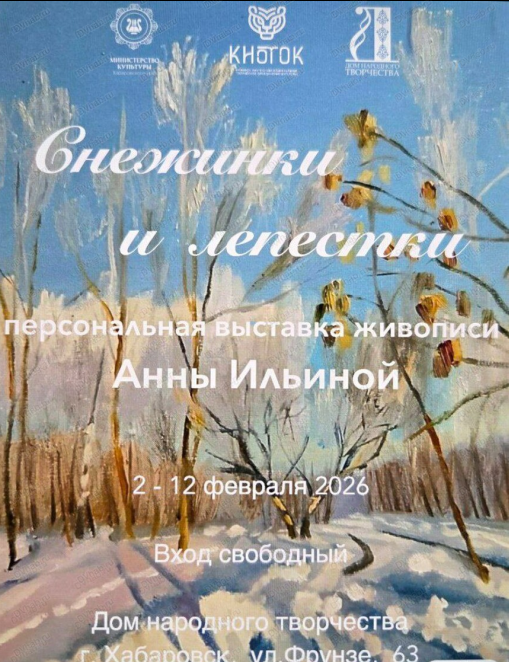 Когда цветёт февраль: выставка "Снежинки и лепестки". С 2 по 12 февраля в Доме народного творчества пройдёт персональная выставка Анны Ильиной.