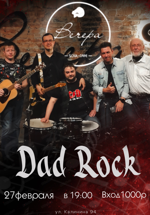 27 февраля в кафе "Вечера" выступит группа Dad rock.