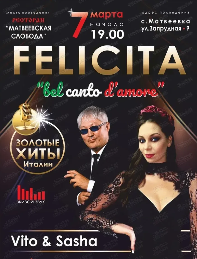 В арт-ресторане "Парус" пройдет удивительный музыкальный вечер итальянской музыки. Атмосфера погрузит вас в те времена, когда песни с фестиваля в Сан Ремо зажигали сердца наших людей, в прекрасную итальянскую эстраду! Спешите слышать!