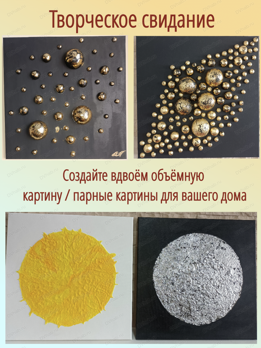 "Творческое свидание" проводится для одной пары, вас никто не будет отвлекать, вы сможете посвятить время друг другу и совместному творчеству.