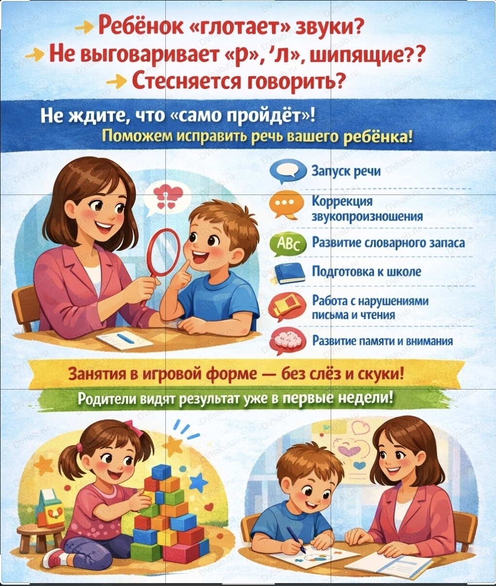 Ребёнок «глотает» звуки? Не выговаривает «р», «л», шипящие? Стесняется говорить или его трудно понять?