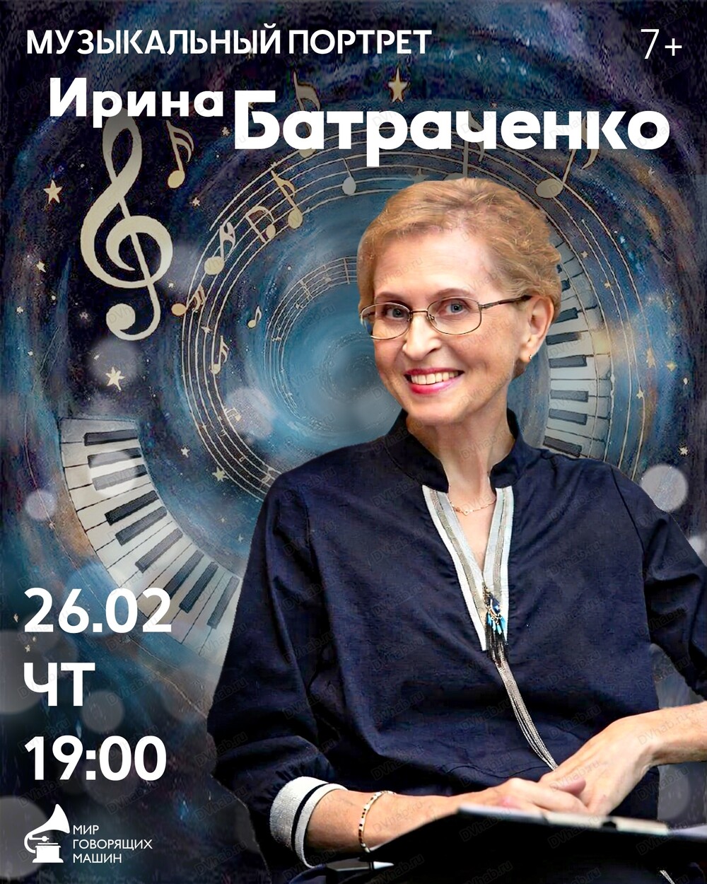 Формат «музыкального портрета» уже успел занять особое место в программе мероприятий нашего музея и, что особенно важно, полюбиться вам. Поэтому мы приглашаем вас 26 февраля на экскурсию-интервью с Ириной Батраченко – музыковедом, сотрудником МКЦ Амурский Утёс, ведущей концертов, поэтом, лауреатом премии им. Петра Комарова в области поэзии, пианисткой.