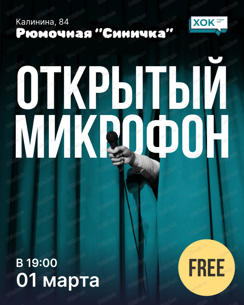 Вы зарегистрированы на событие «Стендап. Открытый микрофон», на 1 марта 19:00