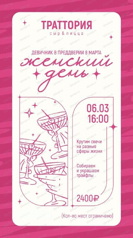 Вы зарегистрированы на событие «Девичник в преддверии 8 Марта "Женский день"», на 6 марта 16:00