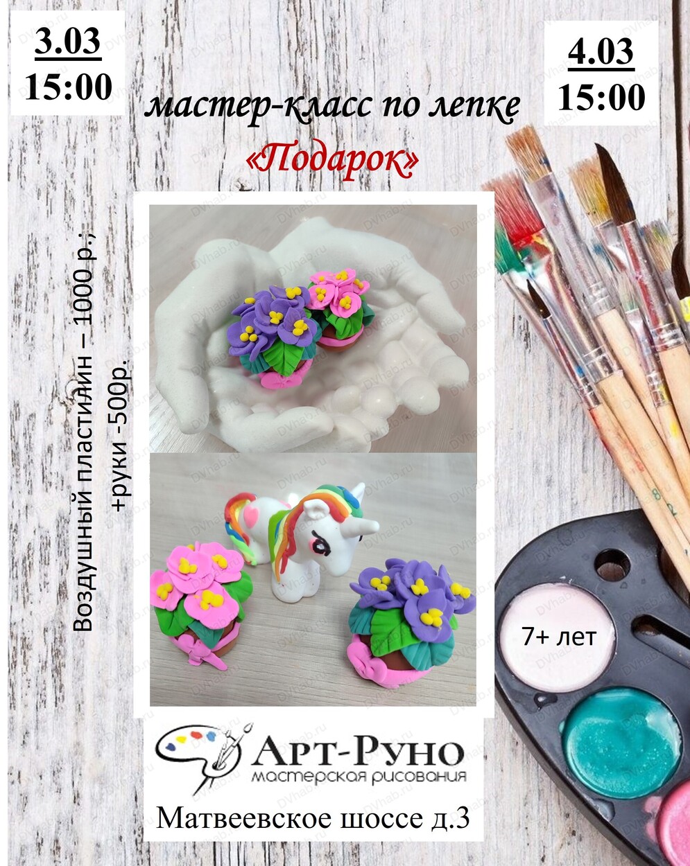 Стоимость: 2 поделки из воздушного пластилина- 1000 руб., 2 поделки из воздушного пластилина + руки- 1500 руб.