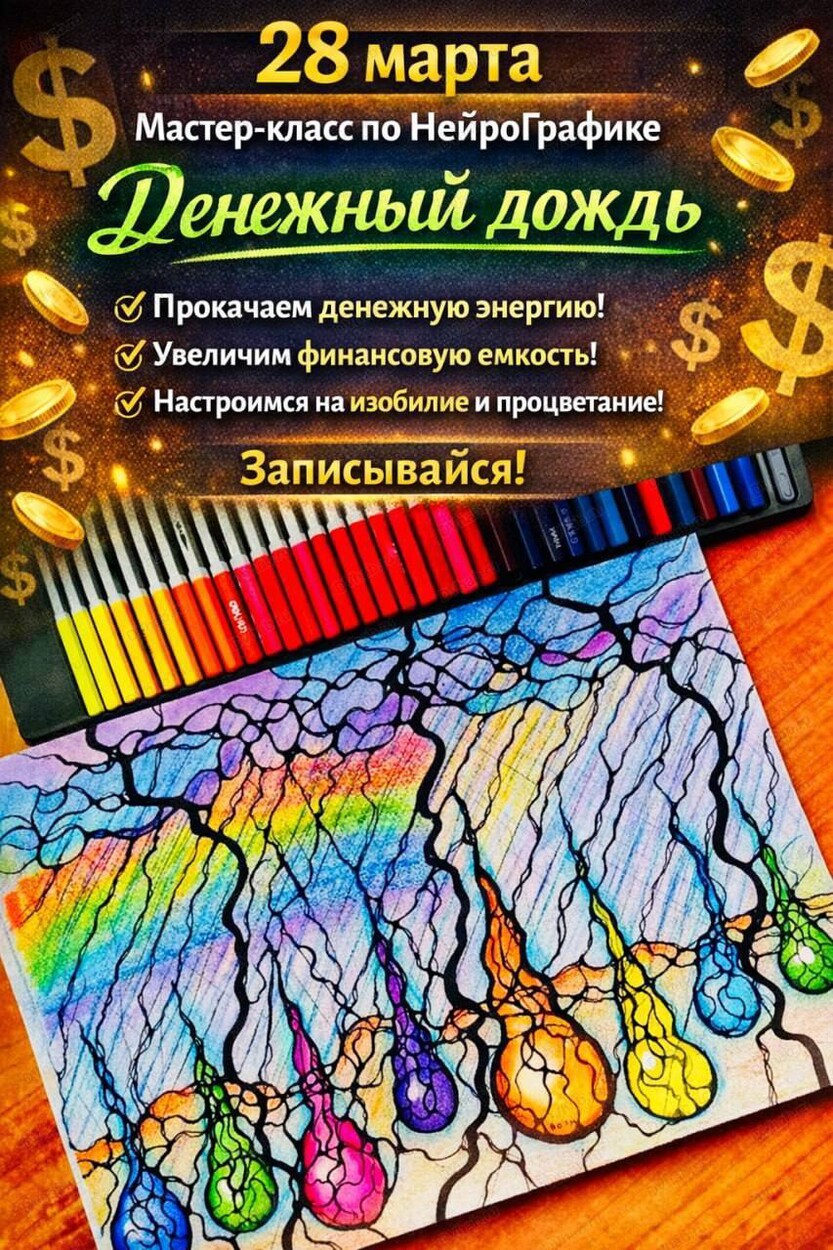 Вы зарегистрированы на событие «Мастер-класс по нейрографике "Денежный дождь"», на 28 марта 18:00