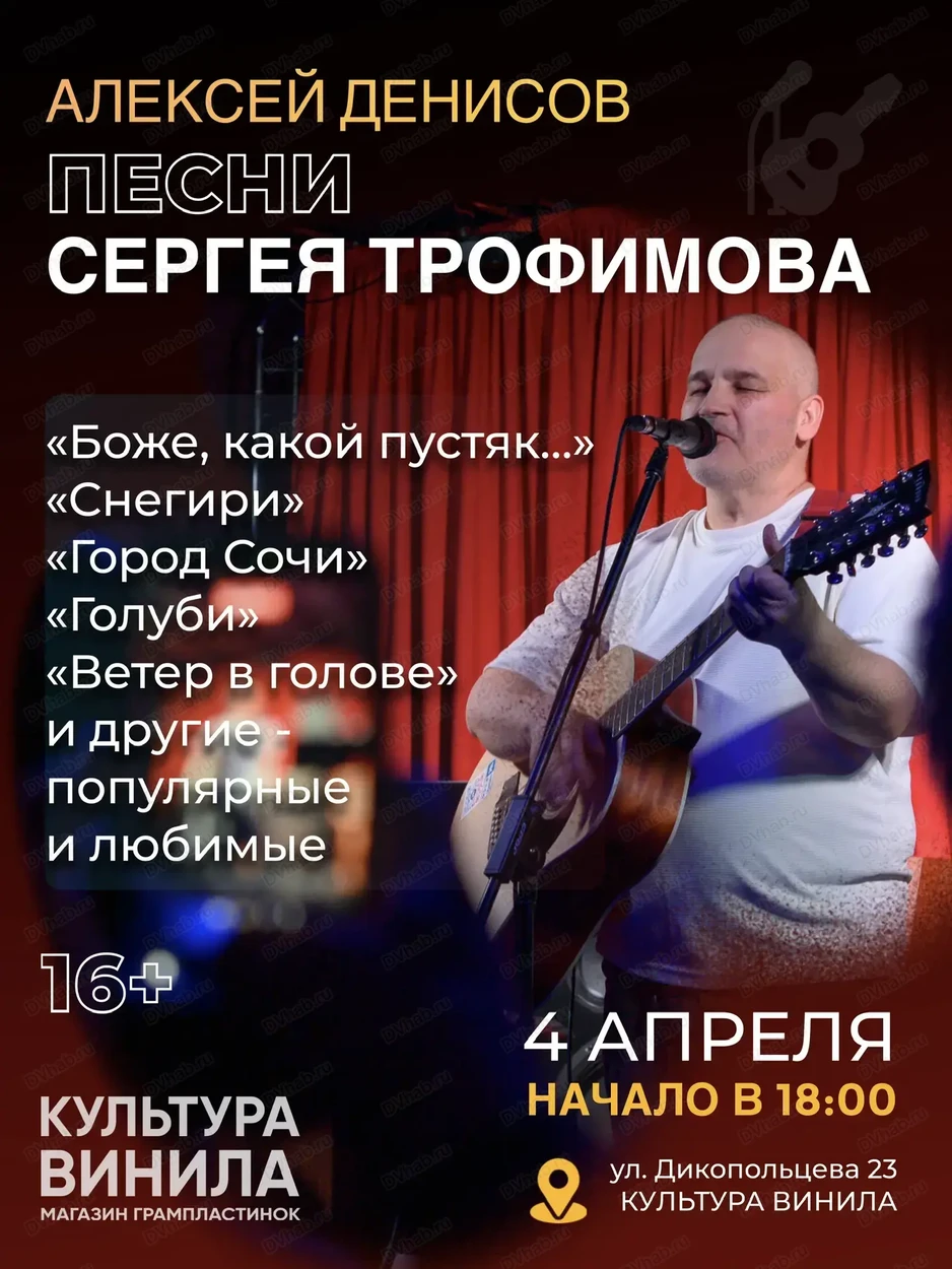 4 апреля приглашаем вас на душевный музыкальный вечер с Алексеем Денисовым. В этот вечер прозвучат самые яркие хиты любимого исполнителя!