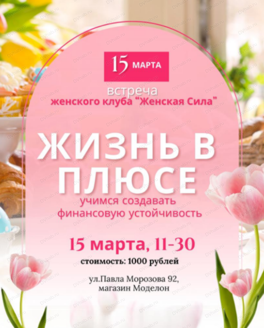 Встреча женского клуба "Жить в плюсе. Четыре счета: встреча о деньгах и заботе о себе" в Хабаровске 15 марта