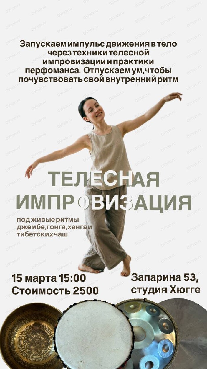 Телесная импровизация- свободное движение тела под исцеляющие вибрации сакральных инструментов - 90 минут