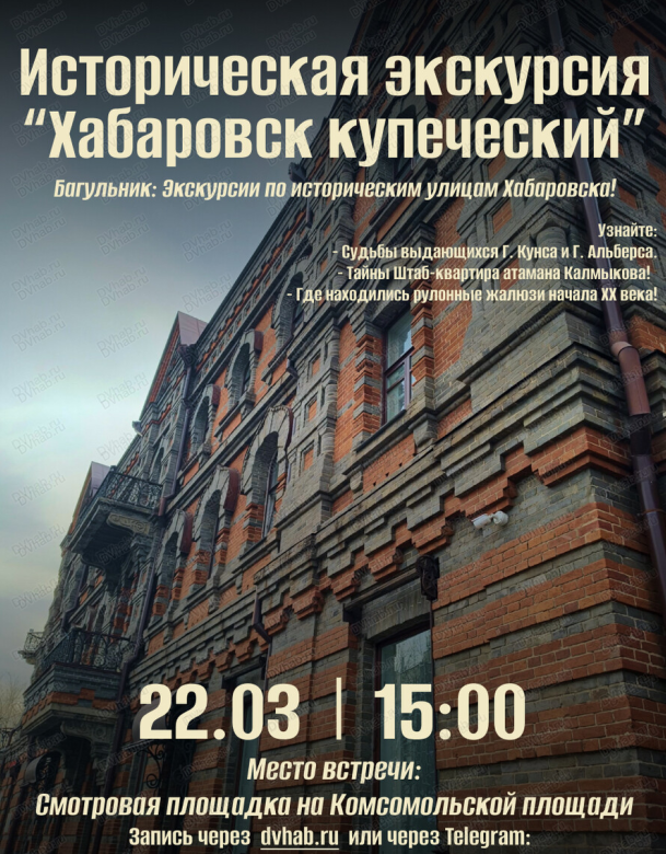 Вы зарегистрированы на событие «Историческая экскурсия "Хабаровск купеческий"», на 22 марта 15:00