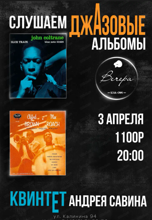 3 апреля в кафе "Вечера" пройдет вечер "Слушаем джазовые альбомы".