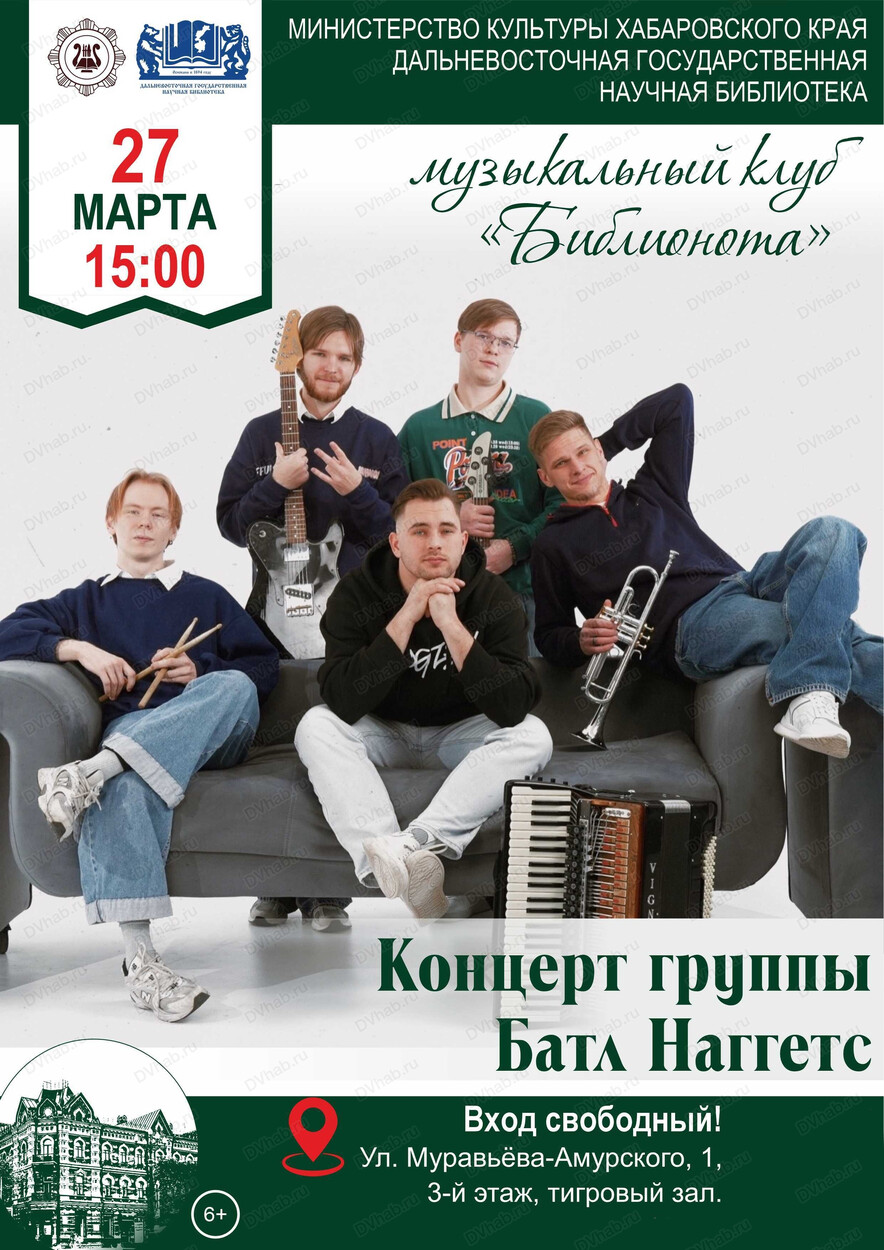 27 марта в 15:00 вас приглашают на уникальное событие — акустический концерт легендарной хабаровской группы «Батл Наггетс».