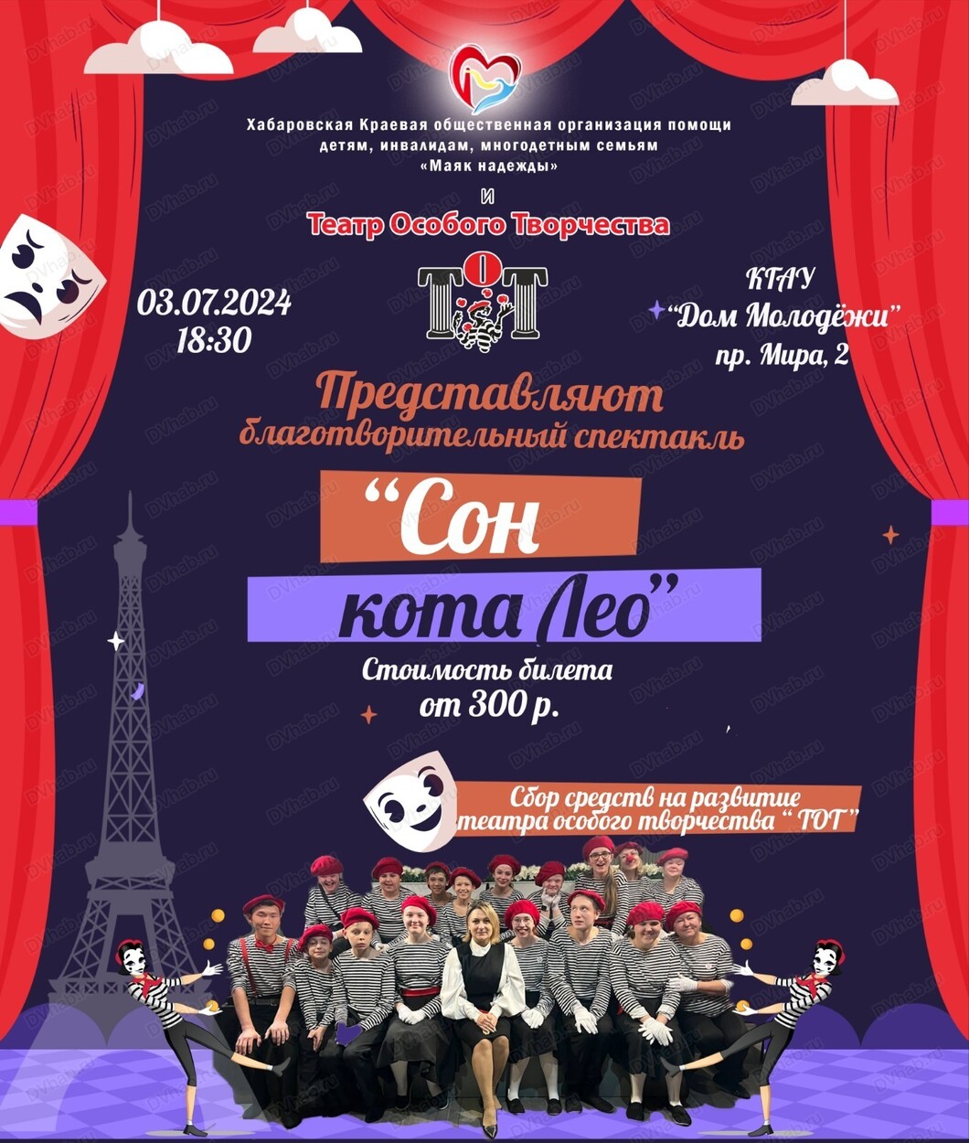 3 июля в Доме Молодежи пройдет благотворительный спектакль "Сон кота Лео".