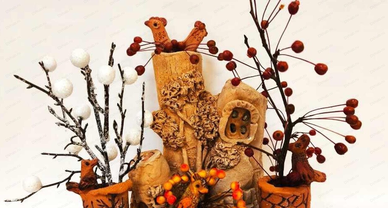 В технике пласта мы выполним миниатюрные вазы для сухоцветов, которые украсят ваш стол. Весною птицы будут петь среди веточек вербы, а в канун Нового года - прятать подарки под еловой веткой.