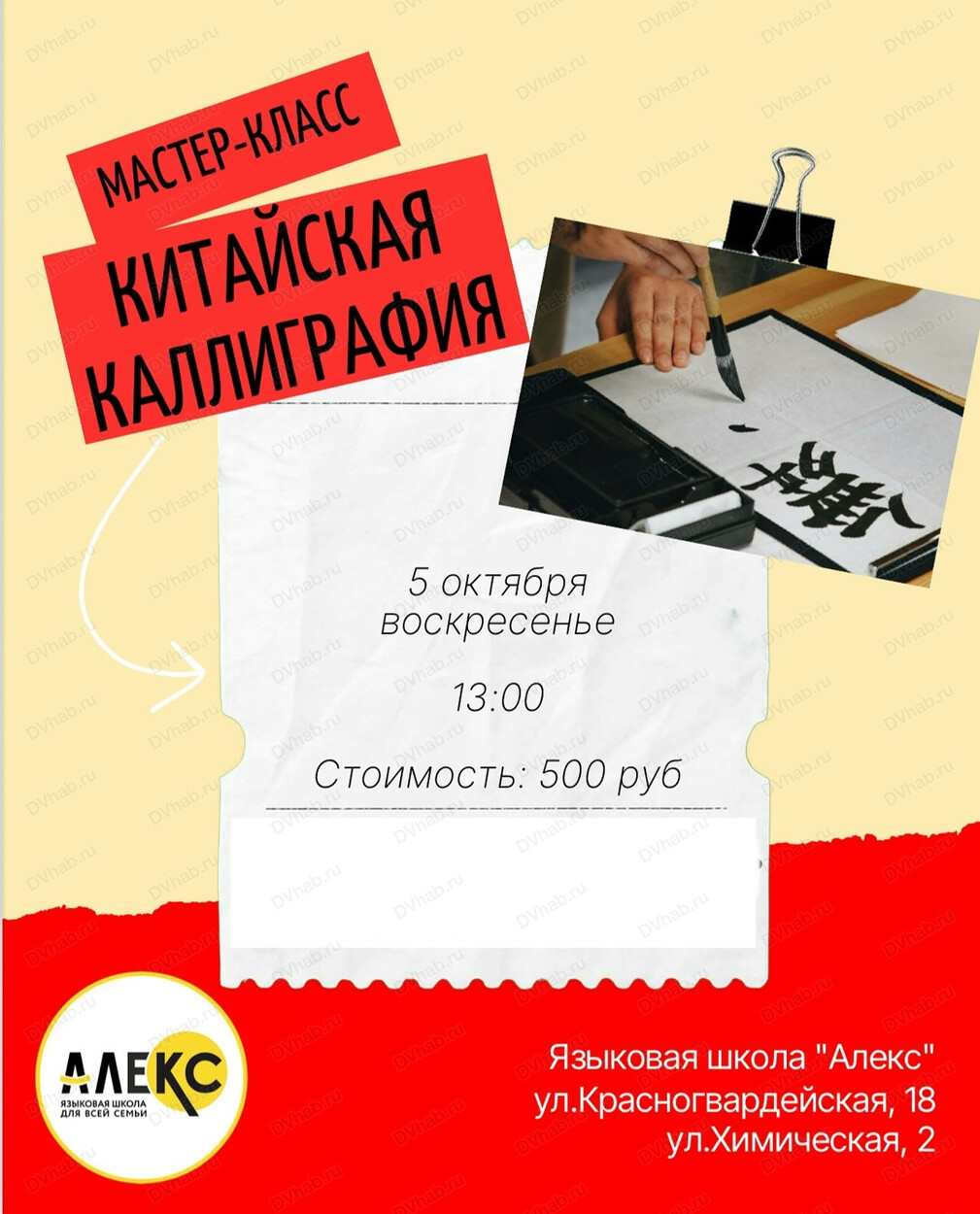 5 октября языковая школа "Алекс" приглашает на мастер-класс по каллиграфии.
