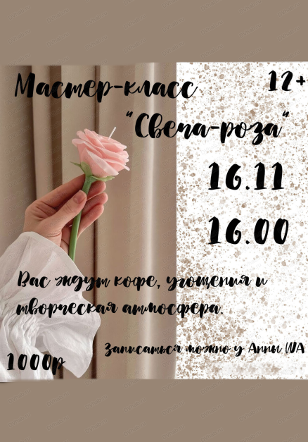 Вы научитесь делать красивую свечу в виде розы подручными способами. 16 ноября в 16:00 в мастерской "Ватага", ул. Вокзальная 79, 3 этаж, к. 306.