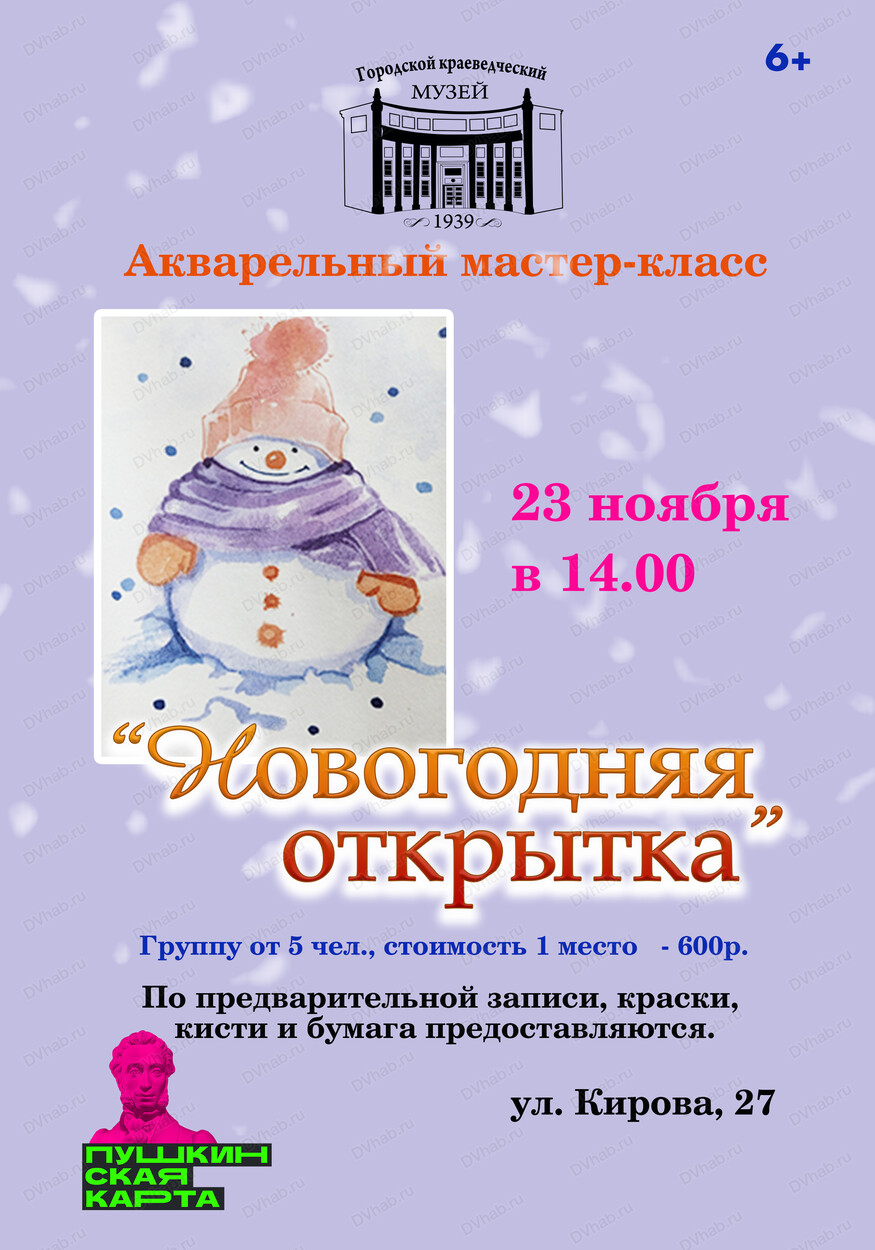 23 ноября в 14:00 в стенах краеведческого музея состоится акварельный мастер-класс "Новогодняя открытка".