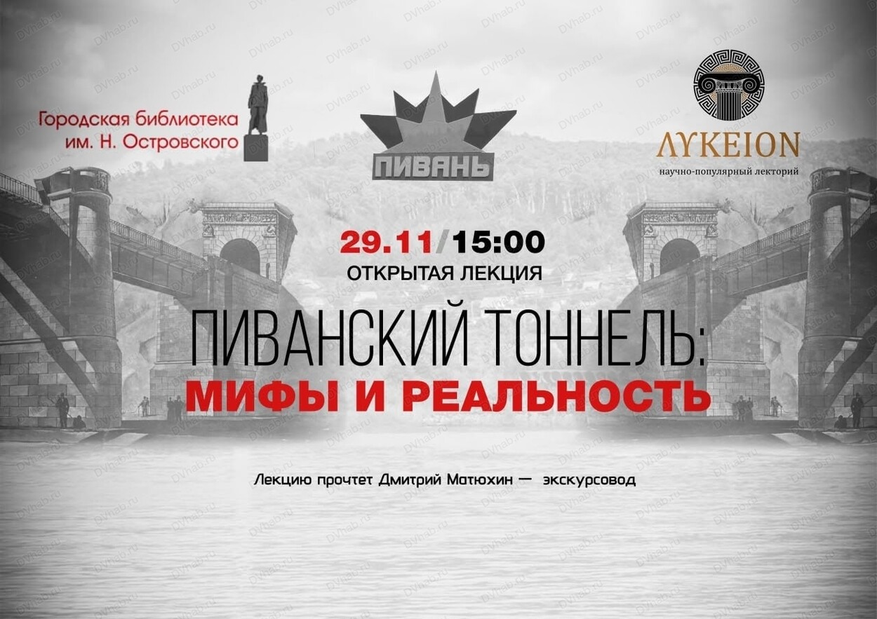 С лекцией выступит экскурсовод Дмитрий Матюхин. Лекция будет посвящена истории пиванского тоннеля.