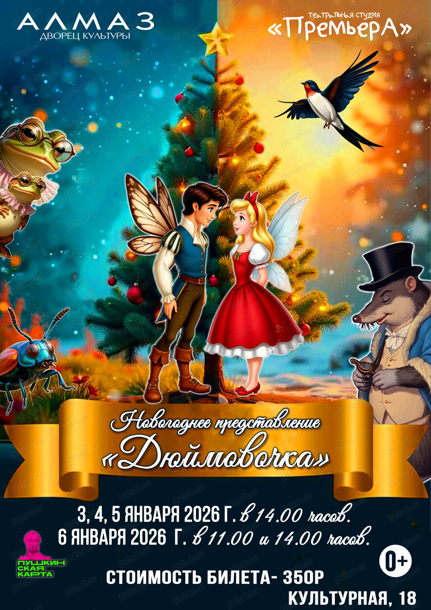 Новогоднее представление для вас подготовили детские творческие коллективы Дворца культуры «Алмаз». Много музыки, танцев, песен, веселые приключения, забавные игры и конкурсы – подарите детям яркий Новый год во Дворце.