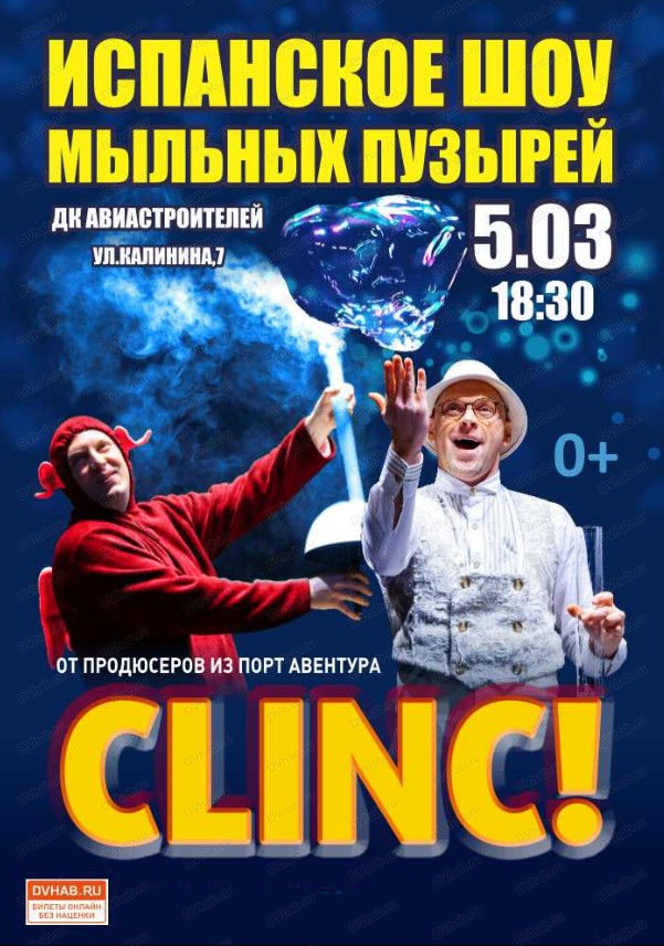5 марта в ДК Авиастроителей пройдет шоу мыльных пузырей CLINC (Порт Авентура, Испания).
