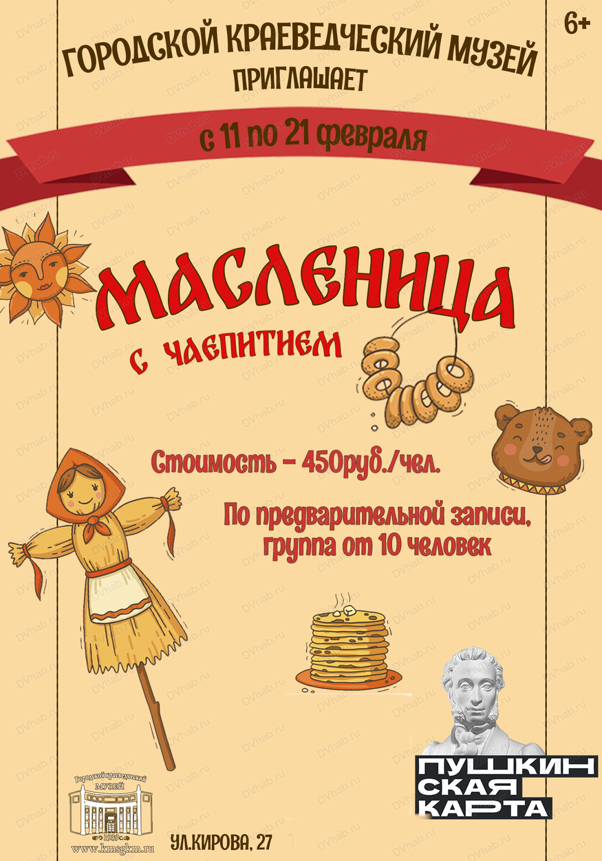 Краеведческий музей приглашает с 11 по 21 февраля на фольклорный праздник "Масленица".