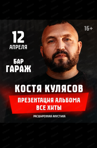 12 апреля в баре "Гараж" в рамках юбилейного тура "АнимациЯ 25" состоится акустический концерт Кости Кулясова, лидера группы "АнимациЯ".