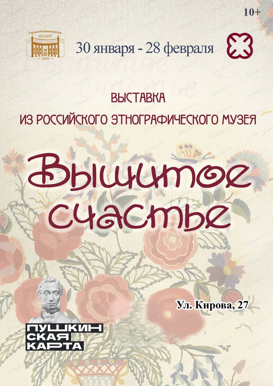 Выставка "Вышитое счастье" (фотоматериалы из собрания Российского этнографического музея, коллекция вышивок из фондов Городского краеведческого музея и мастериц Натальи Соломоновой и Ксении Лобжа).