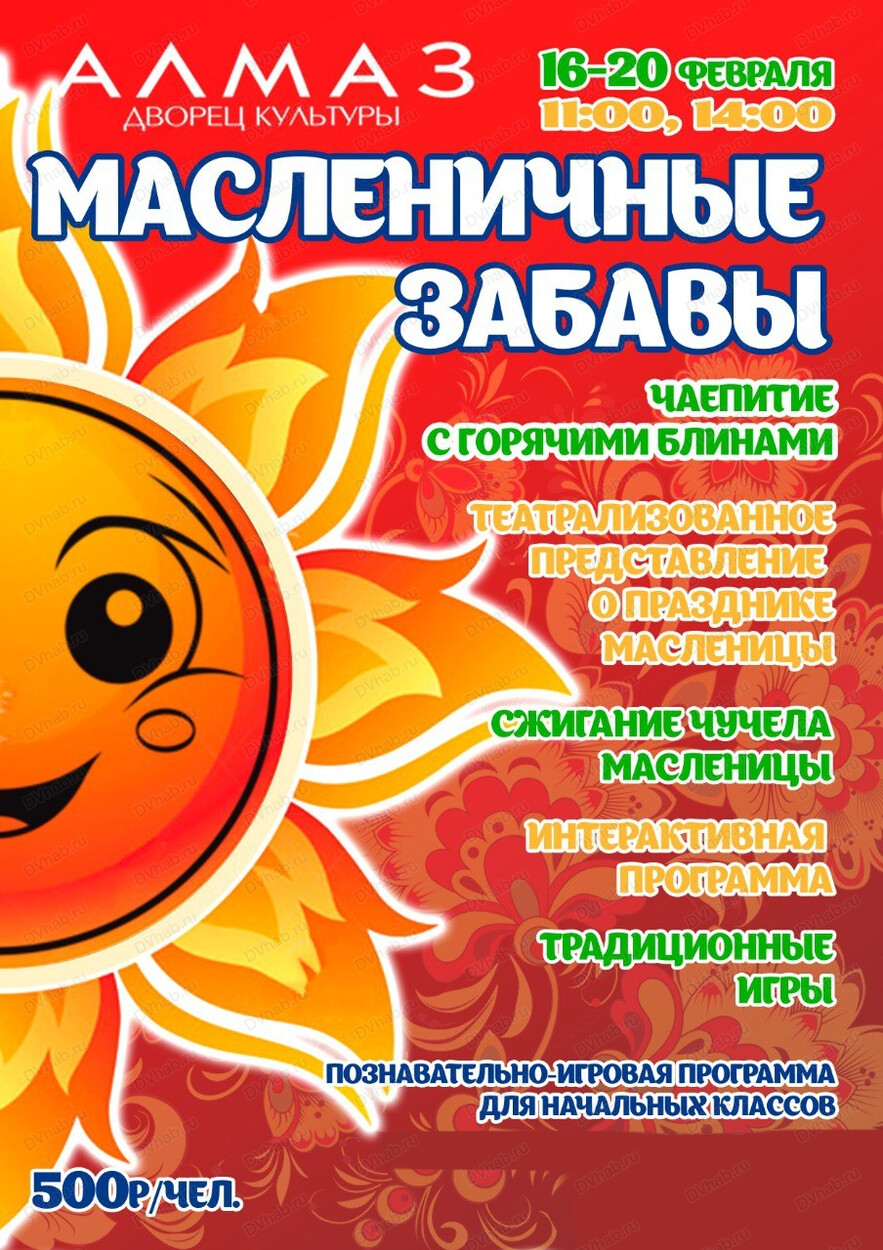 ДК "Алмаз" приглашает дружные классы отметить Масленицу с 16 по 20 февраля.