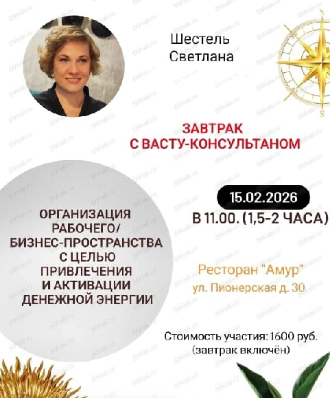 Спикер: Шестель Светлана - Васту-консультант, закончила самую крупную Международную Васту-школу Ларисы Скороходовой, бизнес-леди.
