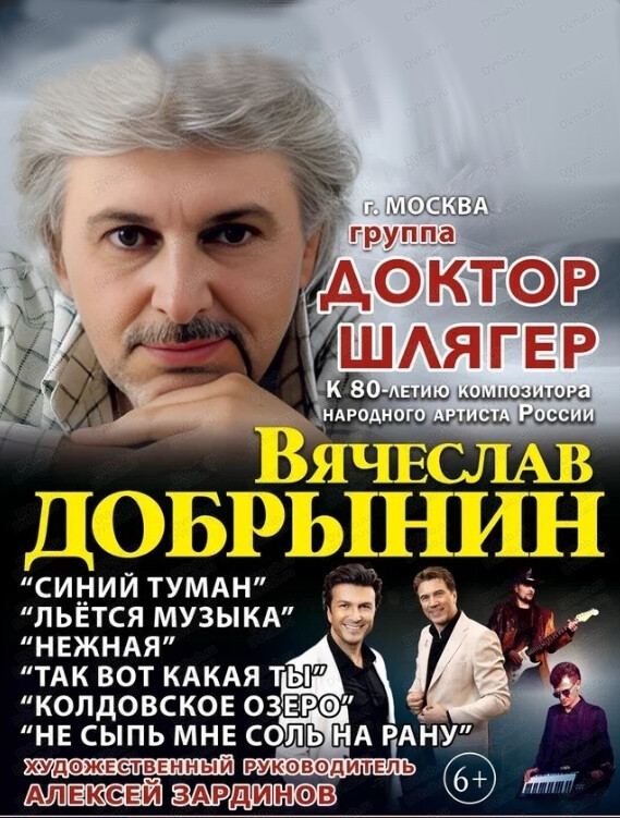 Концерт, посвящённый 80-летию со дня рождения композитора Вячеслава Добрынина - легендарного советского и российского композитора и певца, лауреата всесоюзных и международных конкурсов и фестивалей, народного артиста РФ.