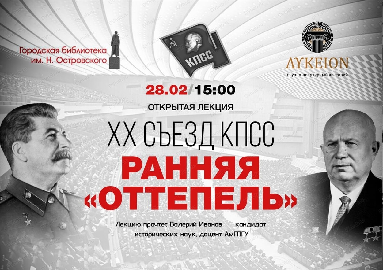 Лекция будет посвящена XX съезду КПСС - поворотному событию в истории Советского Союза. Основное внимание будет уделено знаменитому докладу Н. С. Хрущёва «О культе личности и его последствиях», прозвучавшему на закрытом заседании 25 февраля 1956 года. Слушатели узнают, как съезд положил начало процессу десталинизации, реабилитации жертв репрессий и ослаблению цензуры. Также будут затронуты международные последствия решений съезда, включая раскол в мировом коммунистическом движении. Лекция поможет понять значение XX съезда для трансформации советского общества и политики СССР в период «оттепели».
