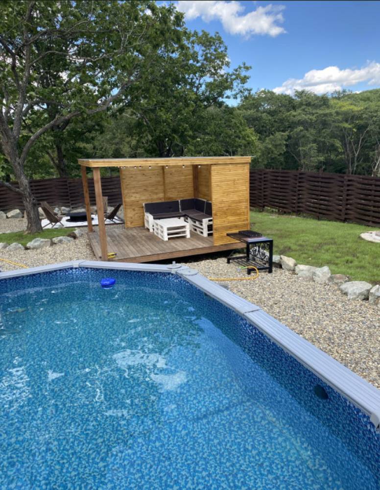 На территории базы есть бассейн, мангальная зона, банный чан, баня-бочка.