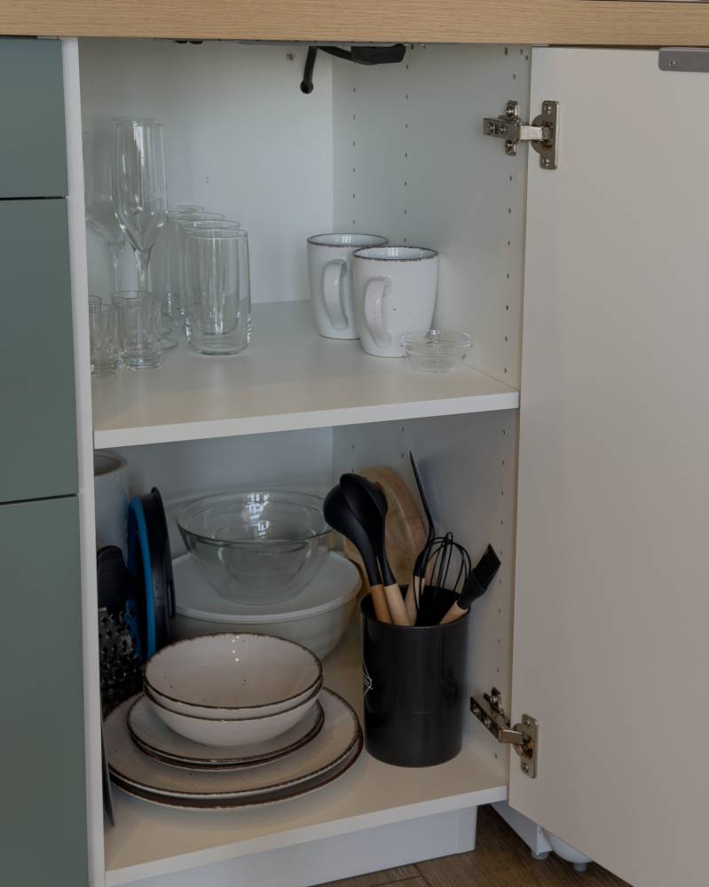 - Функциональная кухня (посуда для трапезы и готовки, варочная панель, микроволновка, холодильник, чайник, питьевая вода)