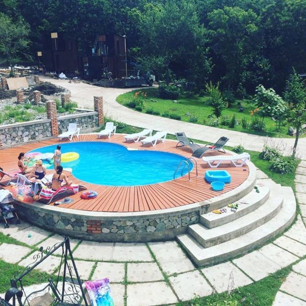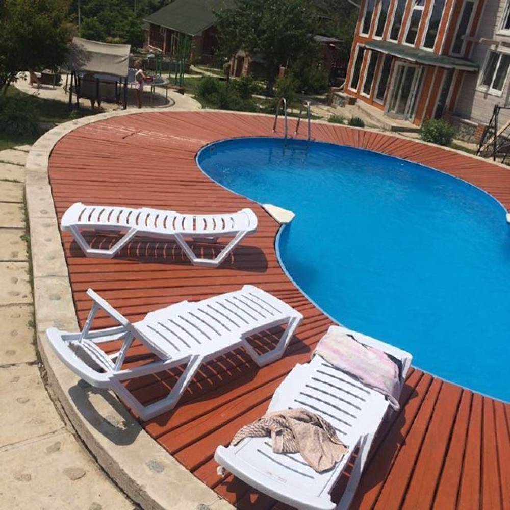 На територии базы есть парковка, беседка, детская площадка, бассейн.