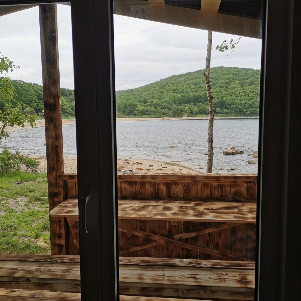На территории базы 8 гостевых домов. Все дома построены на первой поляне у въезда, пресный ключ отделяет ее от палаточного лагеря.