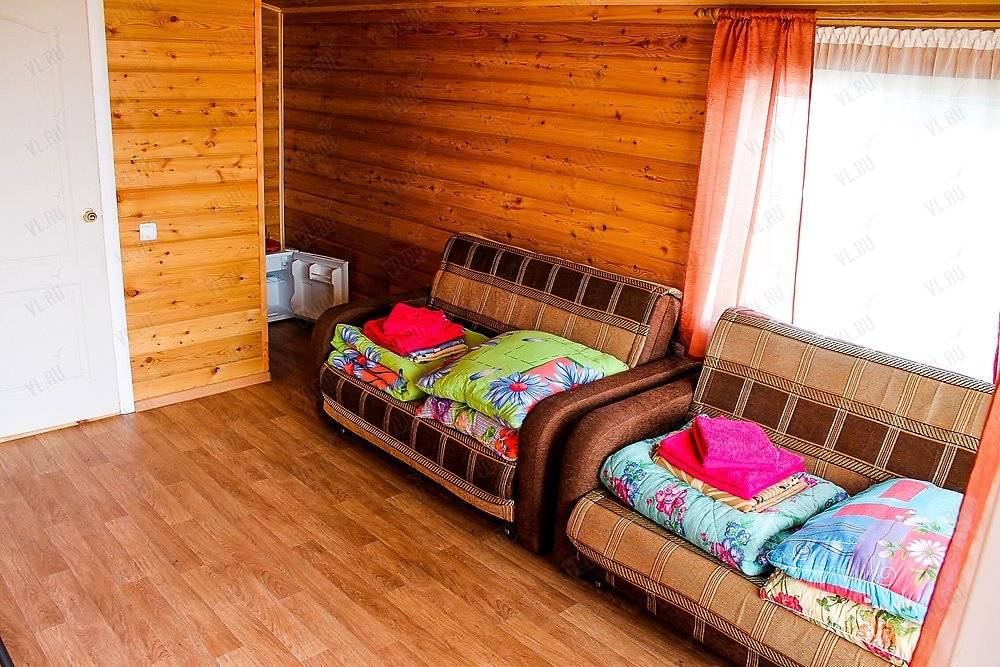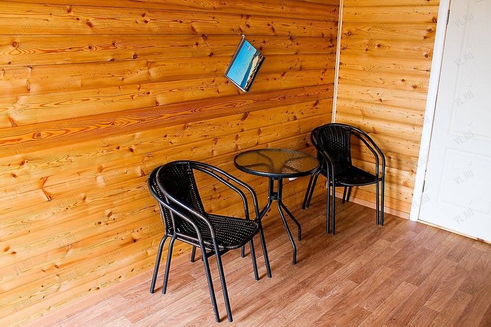 На территории базы расположено 30 домиков, разделенных на два отдельных номера. В номере предусмотрено проживание до 4 человек. Номера оборудованы всем необходимым для проживания отдыхающих: два двуспальных дивана, ванная комната с туалетом и душевой кабиной, холодильник, телевизор, чайник, чайная посуда, постельное белье. Уборка номеров осуществляется один раз в день по требованию отдыхающих.