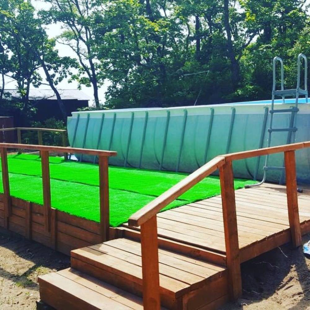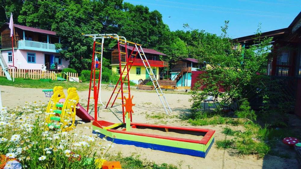 На территории базы отдыха находится детская горка, батут, детский бассейн, песочница, качели. Есть волейбольная площадка, настольный теннис, футбол, беседки с мангалами.