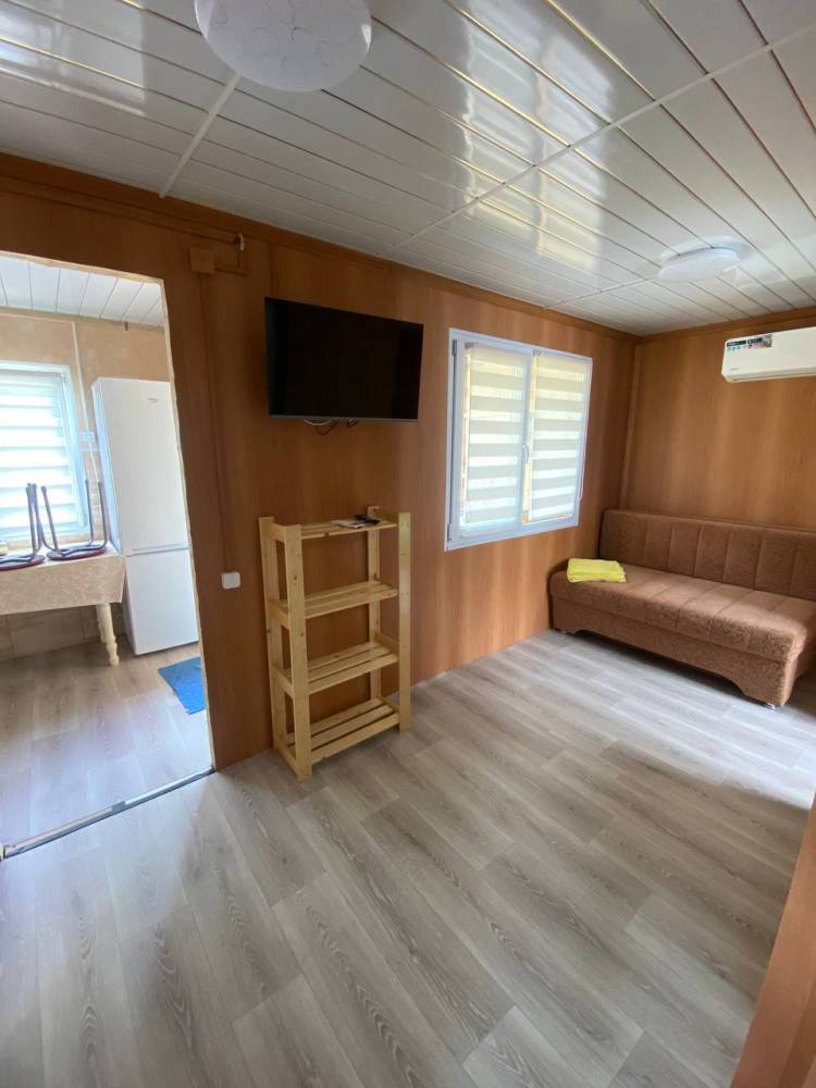 Для проживания предлагается глэмпинг 25,5 кв.м (жилая зона + терраса) и домики на 4-6 человек.