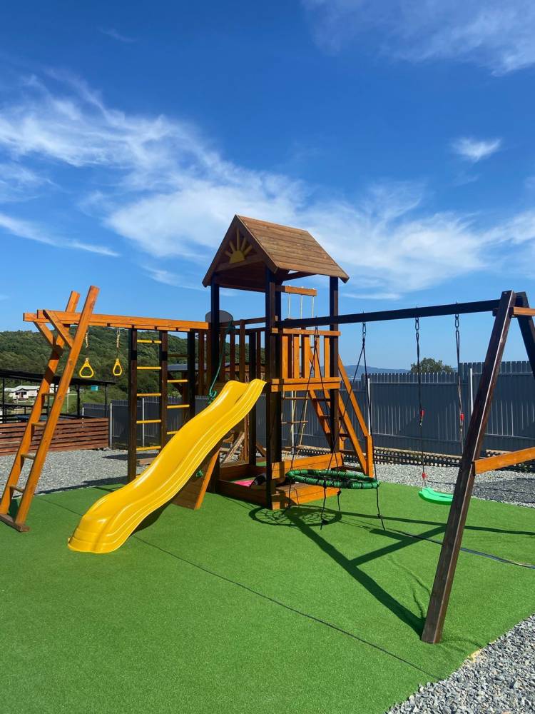 На территории: мангальная зона, беседка, батут для детей, большая детская площадка, каркасный бассейн с обогревом..