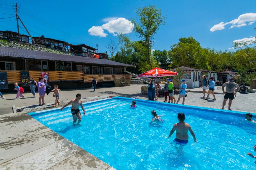 База отдыха расположена в центре города Хабаровск, район "Железнодорожный", ул. Выборгская, 99 (со своим водоемом).
