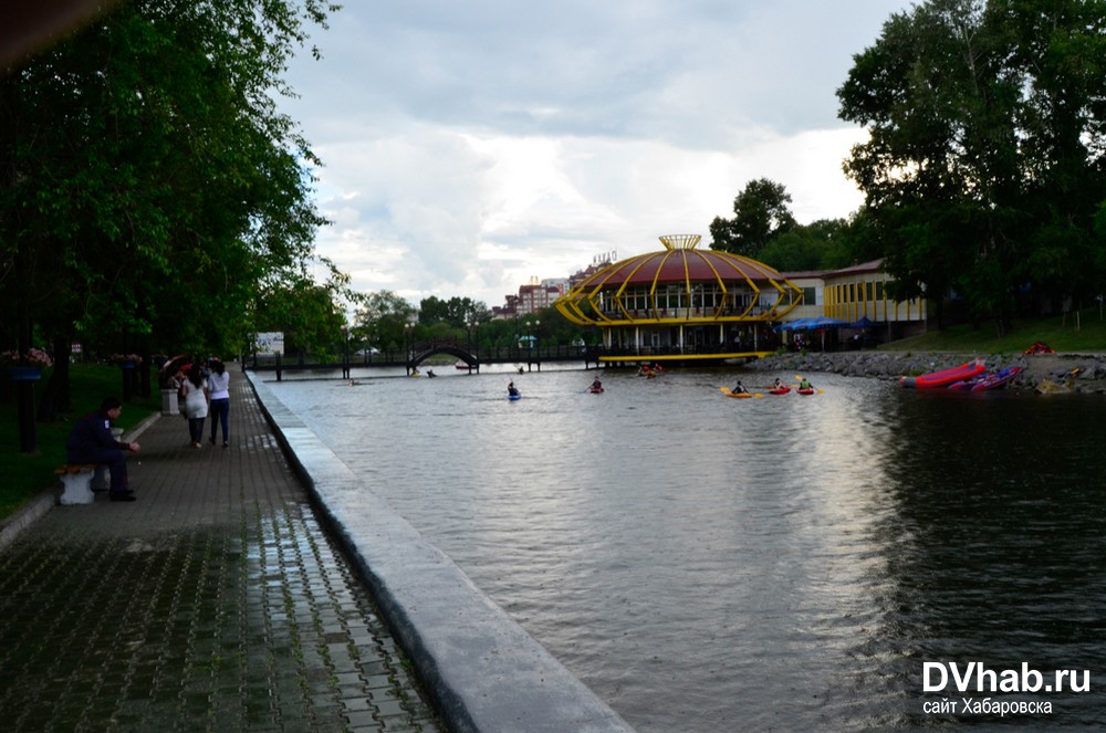 Хабаровские городские пруды представляют собой каскад из трех прудов, которые отделены друг от друга небольшими дамбами с подъездными дорогами и пешеходными аллеями. Берега прудов — это набережные, вылитые из железобетона. Хабаровские городские пруды вплотную примыкают к спортивному комплексу Стадион «Динамо», а также к комплексу «Платинум-Арена», являясь их продолжением.