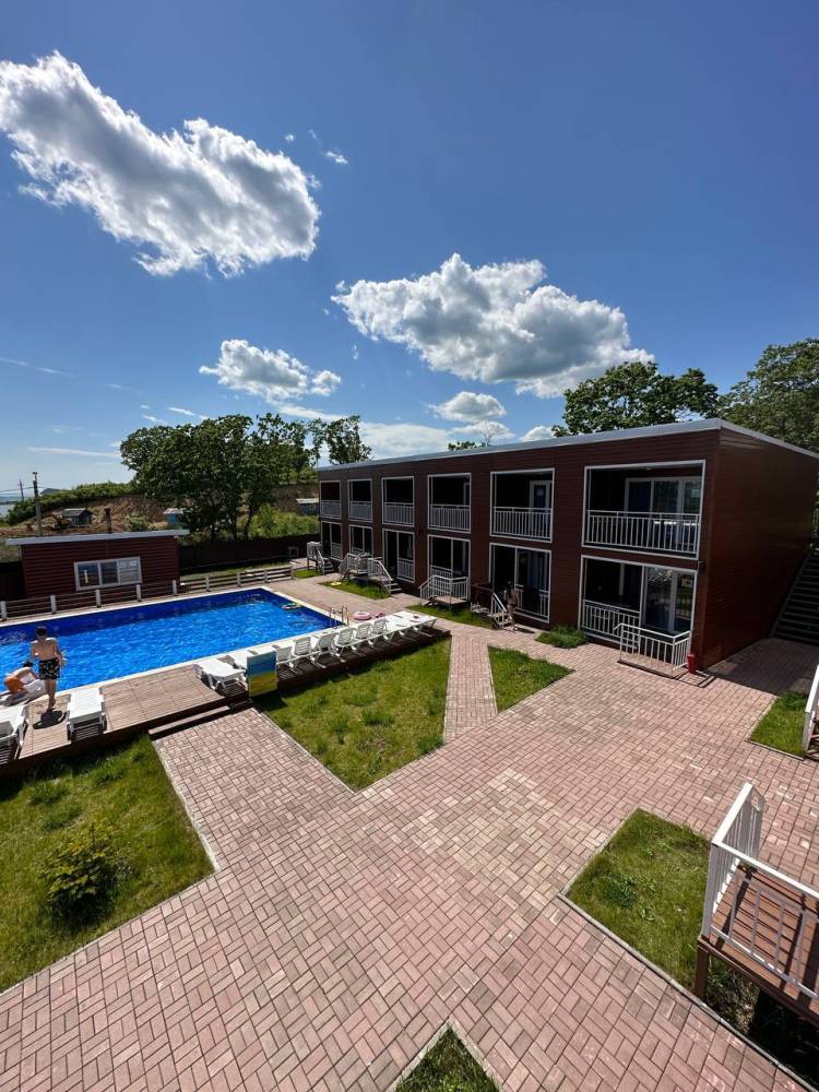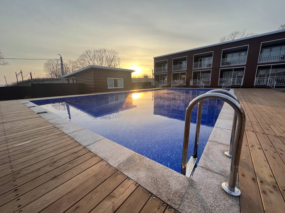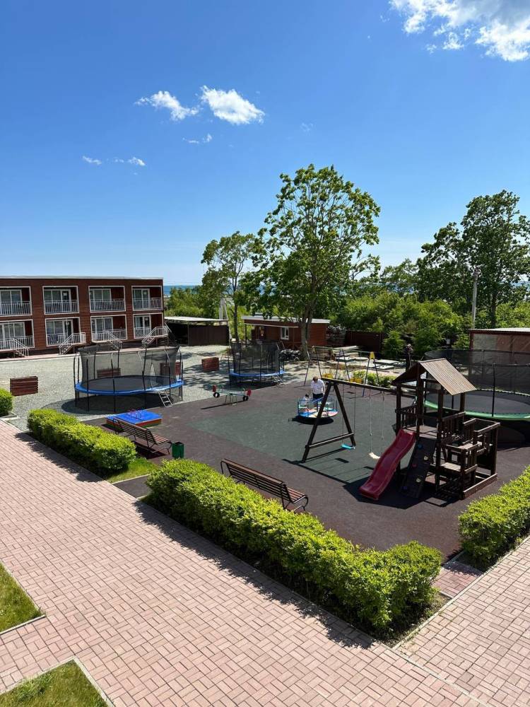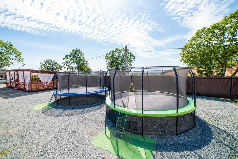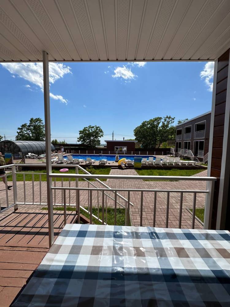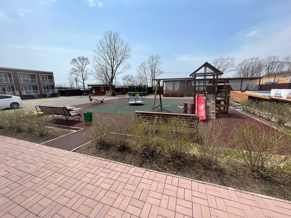 На территории есть парковка, детская и спортивные площадки, бассейны с подогревом и зона отдыха с шезлонгами, русская баня на дровах, банный чан, мангальная зона и оборудование для розжига (решетки, розжиг, уголь за отдельную плату), возможна аренда сапов и велосипедов.