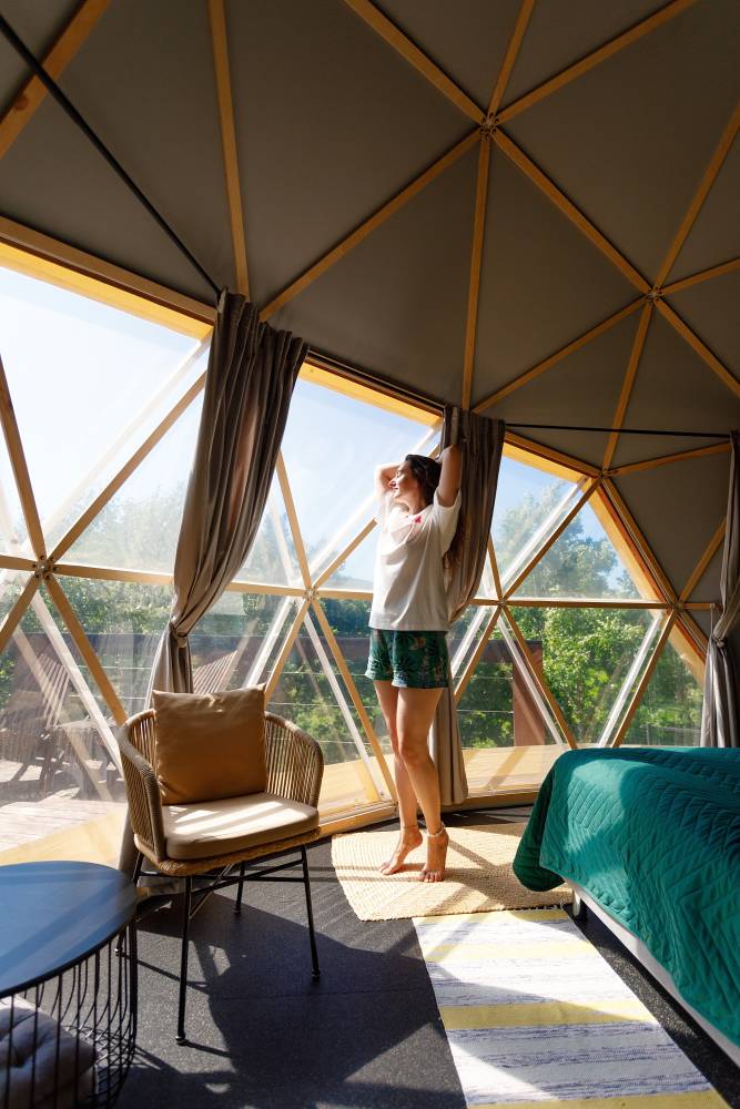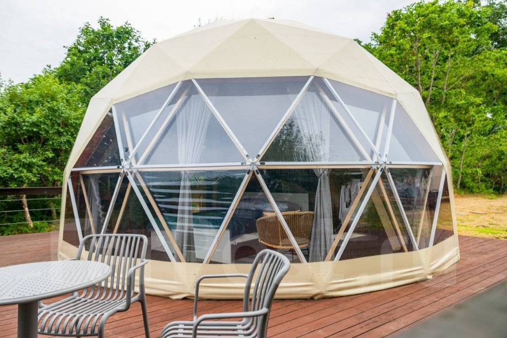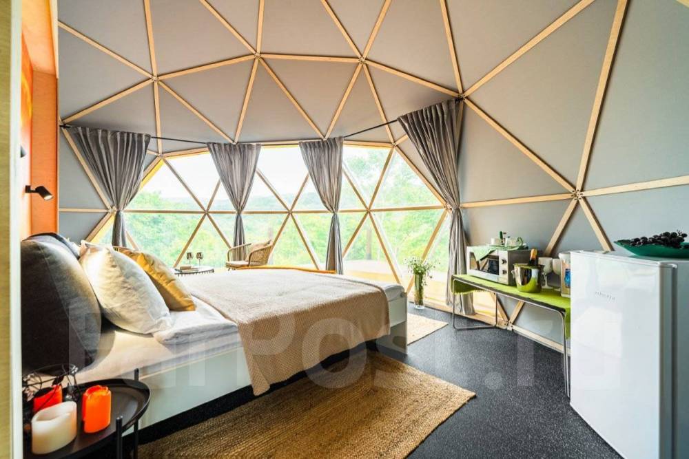 Для проживания предоставляются 5 жилых модулей (купола) и 1 главный шатер.