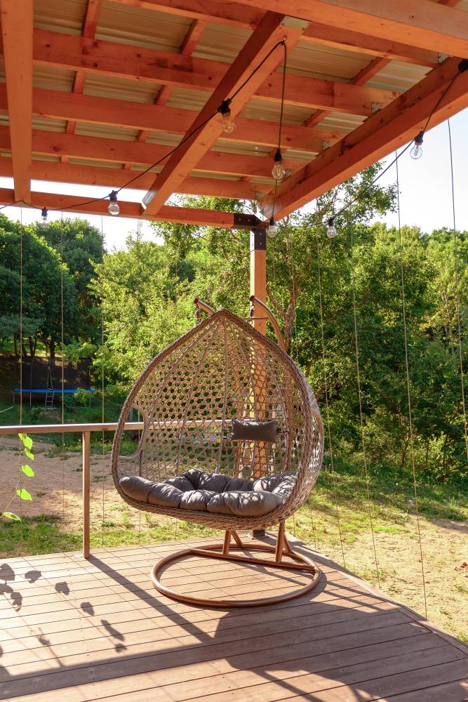 Гриль-зона индивидуально, тандыр, камин, костровая чаша, банный чан с террасой и теплой беседкой. Бассейн с подогревом (май-октябрь), батут.