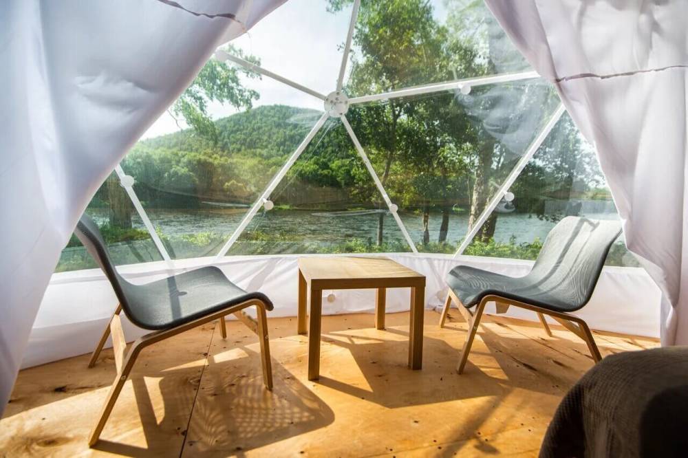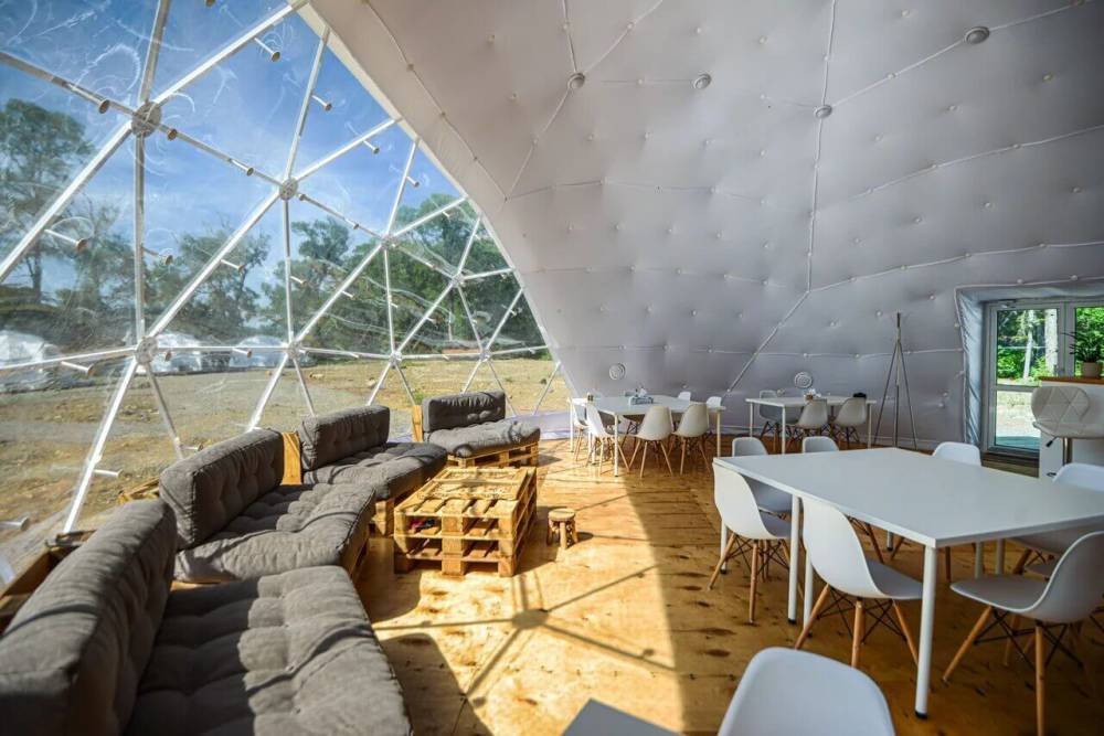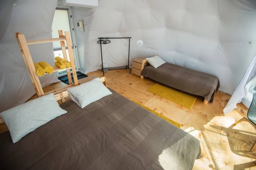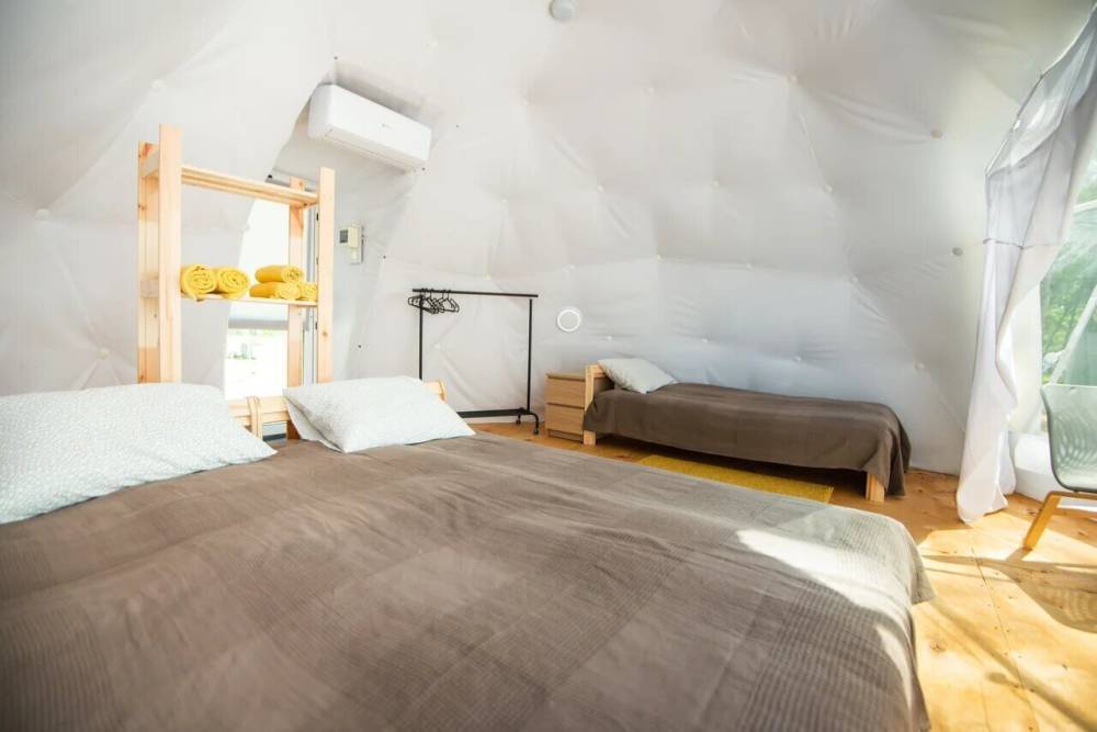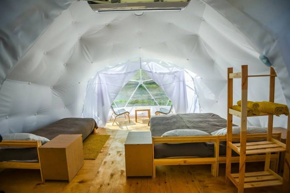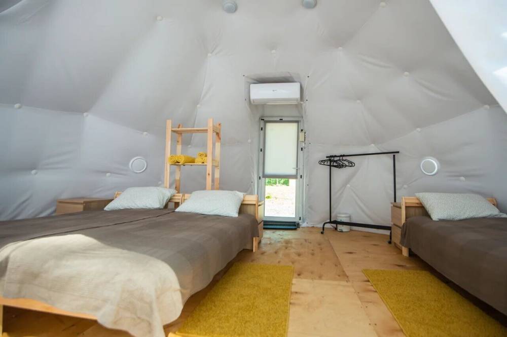 Для проживания предоставляется шесть комфортных шатров, вместимостью до 3х гостей. Шатры оборудованы спальными местами, мебелью, кондиционерами. Предоставляется постельное белье и полотенце на каждого гостя. Санузел расположен на территории базы.
